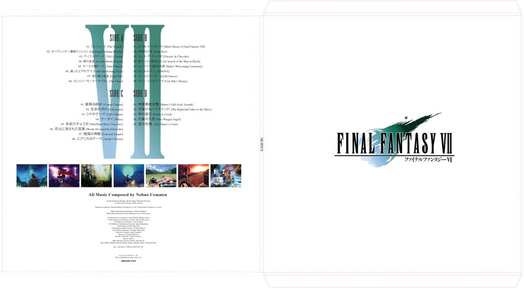 A lot of Final Fantasy vinyl that Square Enix puts out is housed in these terrible plastic baggies, so I designed these jackets that were inspired by the CD designs and inserts that came with the vinyl records. I spent a lot of time on them to make them clean and cohesive, but unfortunately I have never gotten them printed. Maybe someday!