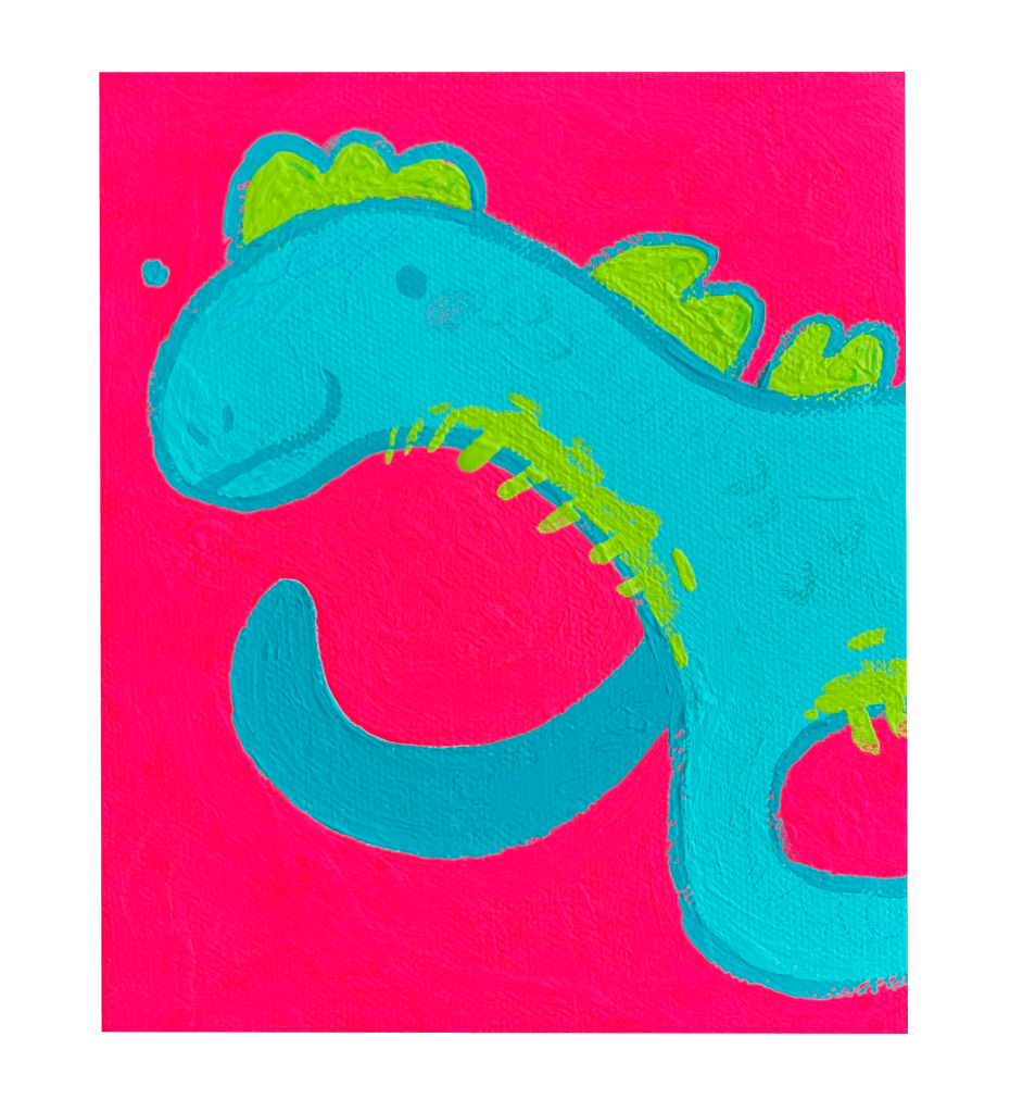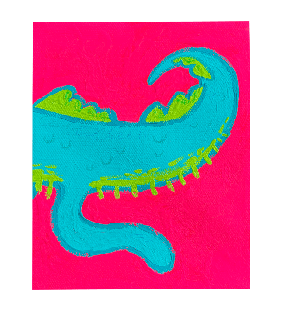 “Dragon Creature” for Scott – Acrylic, acrylic gouache and colored pencil on canvas panels
