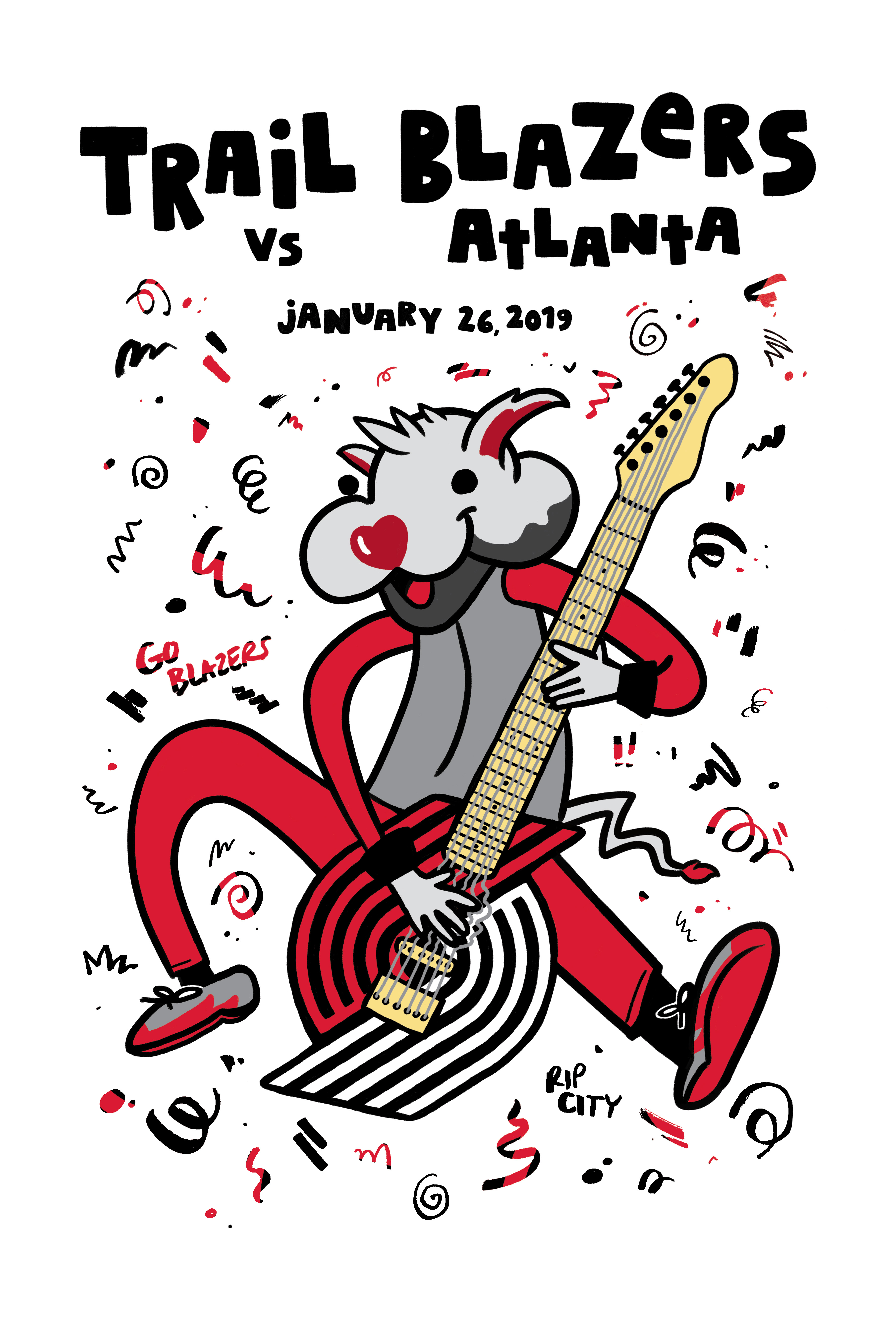 Was lucky enough to be selected to be involved in the second round of the Portland Trail Blazers Poster Series for the 2018-2019 season and it was one of the funnest projects I’ve been a part of so far. I had the idea in my mind for about a year since I love the mascot Blaze the Trail Cat, and was honored to bring it to life and then see the printed poster and see the Blazers take home the win the day before my birthday. The final printed poster is 12″ by 18″.